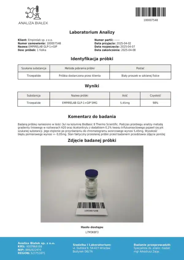 - W temperaturze od 2 do 8 stopni Celsjusza GLP-1 + GIP może być przechowywane do 24 miesięcy.