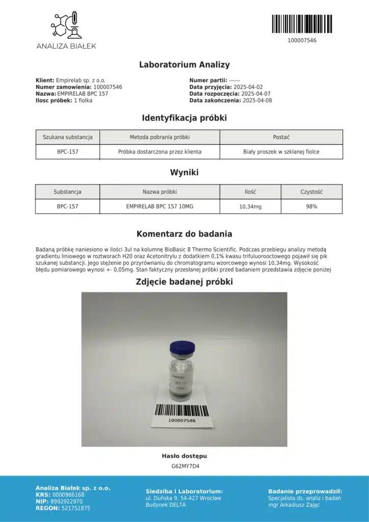 Zalecamy, aby przed zakupem zapoznać się z badaniami naukowymi dotyczącymi BPC-157 oraz jego kartą charakterystyki.
