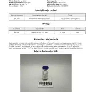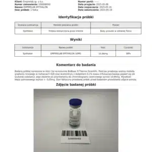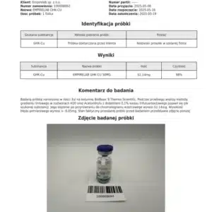 Peptyd przebadany przez niezależne laboratorium. Załącznik analizy czystości Ipamorelinu i CJC-1295 w opisie.