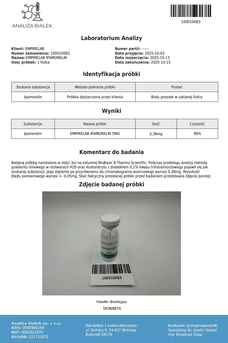 Zalecamy, aby przed zakupem zapoznać się z badaniami dotyczącymi Ipamorelinu oraz jego kartą charakterystyki.