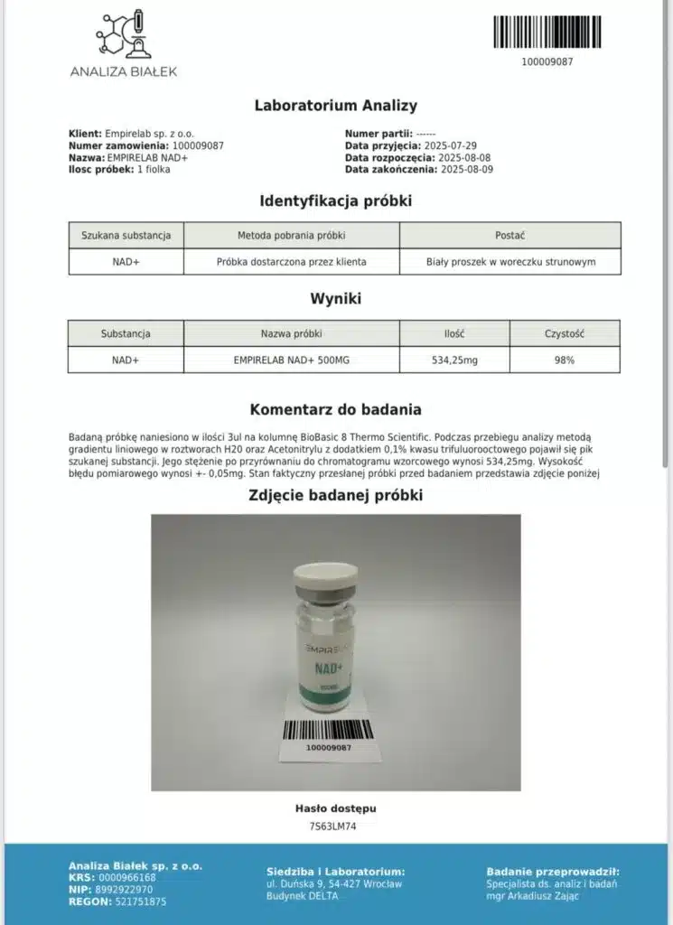 Zalecamy, aby przed zakupem zapoznać się z badaniami dotyczącymi NAD+ oraz jego potencjalnego wpływu na metabolizm komórkowy, poziom energii i procesy regeneracyjne.