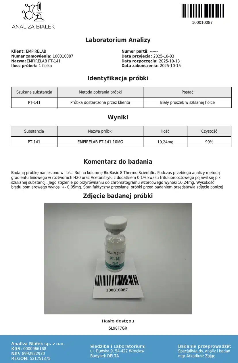 Zalecamy, aby przed zakupem zapoznać się z badaniami dotyczącymi PT-141 oraz jego kartą charakterystyki.