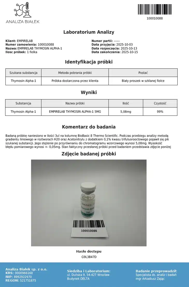 • Ten peptyd może wspierać proces zdrowego starzenia się, uczestnicząc w radzeniu sobie z problemami takimi jak stres oksydacyjny i osłabienie funkcji immunologicznej.