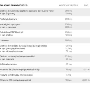 - BrainBoost da Ci niezrównaną pomoc w codziennej pracy czy nauce, gwarantując intensywne wsparcie koncentracji i ostrości umysłu. Dzienna dawka BrainBoosta to 3 kapsułki. Najlepiej stosować go w pierwszej połowie dnia, 15 minut przed planowanym wysiłkiem umysłowym.